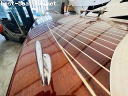 Saisonstart Special Preis - Inzahlungnahme möglich! Italienische Werft, Timossi Baujahr 1968 Länge: 6,60 Meter Breite: 2,30 Meter Einzigartige Motorisierung: BMW Diesel mit 85 kW Komplett restauriertes Mahagoniboot. Komplette Lackierung, neue Kissen, Verchromung, Überholung imp. Elektrik, Werkzeuge und Zubehör. ZUR LEGENDE: Carlo Timossi war Chefkonstrukteur bei Riva und machte sich Anfang der 1950er Jahre selbständig. Es existieren nur wenige Sportboote unter dem Label Timossi und sie sehen den Rivas natürlich zum verwechseln ähnlich. Das wohl bekannteste Boot aus seiner Werft ist ein Rennboot: 1953 ließ sich der italienische Millionär Achille Castoldi von Timossi dieses Rennboot bauen, das er "Arno XI" nannte. Der Bootskörper bestand aus einem stabilen Rahmen aus Bootsbau-Sperrholz und einer Beplankung aus Mahagoni-Furnier sowie dem ferrarrirot lackierten Aufbau aus Aluminium. Herzstück des Boots war zunächst eine Maschine mit 4,5 l Hubraum und Doppelzündung, mit deren 385 PS es eine Höchstgeschwindigkeit von 200 km/h erreichte. Dieser Rekord wurde jedoch bald überboten und der Motor überarbeitet. Mit zwei Kompressoren und zwei Weber-Vergasern leistete die Maschine jetzt 600 PS und konnte den Weltrekord auf über 240 km/h schrauben! 1954 zog sich Castoldi von der Rennerei zurück und verkaufte das Boot an Nando dell`Orto, der den Aufbau am Lufteinlaß und der senkrechten Finne optisch veränderte. Die heutige Bekanntheit des Boots resultiert aus diversen Modellen, die es davon gibt, und dem Design, das auf extreme Weise für die Verbindung des Mythos Ferrari mit dem Wassersport sorgt. DER EIGNER WÜRDE AUCH GEGEN ALLES WAS SIE ANBIETEN TAUSCHEN ! HAT SICH BEREITS VERÄNDERT UND IST FÜR ALLES OFFEN ! Gern nehmen Wir Ihr Boot Inzahlung. Inzahlungnahme, Anlieferung und Abholung möglich! Hollandboot.de Berlin & Sea Ray Berlin Adlergestell 351 12489 Berlin Tel.: 030 - 6432 9866 Öffnungszeiten: Montag bis Freitag: 8.00 - 18.00 Samstag: 10.00 - 15.00 Der Verkauf erfolgt im Kundenauftrag. Alle Angaben beruhen auf Informationen des Eigners und werden nicht garantiert. Irrtum und Änderungen bleiben ausdrücklich vorbehalten. Gern nehmen Wir Ihr Boot Inzahlung. Inzahlungnahme, Anlieferung und Abholung möglich! Hollandboot.de Berlin & Sea Ray Berlin Verkaufsausstellung im Hauptgebäude bitte die Einfahrt Hausnummer 351 nehmen. Adlergestell 351 - 361 12489 Berlin Öffnungszeiten: Montag bis Freitag: 8.00 - 18.00 Samstag: 10.00 - 15.00 Tel. 030-64329866 Mobil. 0175-1662339 Geschäftsführer: Stefan Seckler Sea Ray Berlin im BOOTSWERK das NEUE Wassersportzentrum in der Hauptstadt. hollandboot DE GmbH Geschäftsführer: Stefan Seckler Handelsregister Berlin Nr. HRB 105757 B Umsatz ID.: DE 217649870, Berlin impressum: https://hollandboot.de/impressum.htm Ansässig im BOOTSWERK.berlin