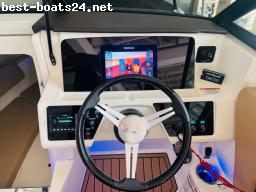 MOTOR: Robust genug für den Betrieb im Salzwasser. Kein Außenborder dieser Klasse bietet mehr Hubraum. Ideal für die 230 SPX Technische Daten - 250 PS/kW 250 / 186 Motortyp: V8 Hubraum: 4,6 Liter Länge: 6,99 Meter Schiffsbreite: 2,54 Meter Tiefgang: 0,82 Meter Antrieb oben 0,44 Meter Kraftstofftank: 189 Liter Wassertank: 86 Liter Gewicht mit Standardmaschine: 1950 kg
