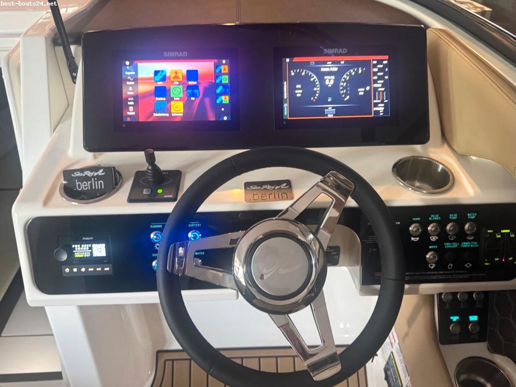 MOTOR: Mercury® MerCruiser® Der V8 neu erfunden Ein 6,2l V8 Motor mit beispiellosem Drehmoment und Beschleunigung um Sie schnell und sanft auf Touren zu bringen. Leistung: PS/kW 350 / 257 Motortyp: V8 Hubraum: 6.2 Liter Antrieb: Bravo III ( Duoprop) mit 2 Edelstahlschrauben ? - Kapitänspaket ? - Dual digitales Armaturenbrett, 2 x 9 Zoll Simrad Touchscreen, Kartenplotter, Tiefenmesser, Wassertemperatur, Tiefenmesser flächenbündig eingelassen mit Vesselview für Motordaten ? - Cockpitheizung über den Motor ? - 12 Voltsteckdose und USB Anschluß im Cockpit ? - dynamisch aktive Rumpftrimsystem ? - Sportlenkrad " Sea Ray Berlin " EXKLUSIV EDITION " ? - Bugsonnenpolster auf dem Vorschiff ? - Bugreling für Bugsonnenpolster ? - Docking Lights ? - Unterwasserbeleuchtung in blau ? - Bugstrahlruder von Vetus ? - Sound System Fusion Im Cockpit 4 x Fusion 6,5 Zoll Marinelautsprecher ? - elektrische Ankerwinde, Edelstahlbugrolle mit 10 KG Edelstahlahlanker, Edelstahlwirbel und Kette zusätzliche Bug Fernbedienung ? - Deckswaschanschluss ? - Biminitop auf Edelstahlgestänge und Verdeckhülle ? - Cabrioverdeck alle Seiten-, Front- und Heckteile mit Fenstern in schwarz " Sumbrella" ? - Sportpersenning bis über die Frontscheibe schwarz " Sumbrella" ? - Flaggenstock mit Magnetfuß ? - großer Domtec Kühlschrank im Heckstaufach ? - Batterieladegerät onboard ? - 2 x Batterie Varta je 105AH mit Batteriehauptwahlschalter ? - 12 Volt Steckdosen und Fusion USB Steckdose ? - SeaDek boden auf der kompletten Plicht und im Bugbereich ? - SeaDek auf der Badeplattform ? - manuelle Unterwasser- Badeplattform ? - Scheibenwischer stb ? - Teaktisch mit Edelstahlgriff, Klappbar umbaubar zur großen Sonnenliege auf der Plicht ? - Elektrischem WC mit Fäkalientank ? - Hecksonnenliege ? - verstellbarer Fahrersitz mit Flipup Funktion ? - LED Plichtbeleuchtung auf dem gesamten Cockpit ? - Edelstahl Getränkehalter ? - Heckdusche ? - Signalhorn ? - LED Navigationsbeleuchtung und Ankerlicht ? - Bilgenpumpe und Bilgenlüfter ? - Fenderclips ? - Grauwassertank mit Edelstahlabsaugstutzen ? - Frischwassertank 76 Liter ? - Edelstahl ? - Wasserskihaken ? - 4 stufige Edelstahlbadeleiter ? - 6 x Edelstahlbelegklampen ? - swiss sprc Motorwanne Tankinhalt: 283 Liter Wassertank: 76 Liter Gewicht: ca: 2750 kg Gewicht: 2631 kg Gern nehmen Wir auch Ihr Boot Inzahlung! www.searay-berlin.de Offizieller Gebietshändler für die renommierte Marke Adlergestell 361 12489 Berlin Showroom Öffnungszeiten: Montag bis Freitag: 8.00 - 18.00 Uhr Samstag: 10.00 - 15.00 Uhr Tel. 030-64329866 Geschäftsführer: Herr Stefan Seckler Mobil. 0175-1662339