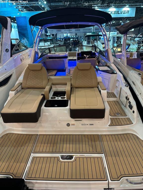 MOTOR: Mercury® MerCruiser® Der V8 neu erfunden Ein 6,2l V8 Motor mit beispiellosem Drehmoment und Beschleunigung um Sie schnell und sanft auf Touren zu bringen. Leistung: PS/kW 350 / 257 Motortyp: V8 Hubraum: 6.2 Liter Antrieb: Bravo III ( Duoprop) mit 2 Edelstahlschrauben ? - Kapitänspaket ? - Wakeboardtower mit Bimini Top ? - digitales Armaturenbrett, 12 Zoll Simrad NSX Touchscreen, Kartenplotter, Tiefenmesser, Wassertemperatur, Tiefenmesser eingelassen mit Vesselview für Motordaten ? - Premium Fusion Stereoanlage mit Subwoofer und Verstärker ? - 12 Voltsteckdose und USB Anschluß im Cockpit ? - Sportlenkrad " Sea Ray Berlin " EXKLUSIV EDITION " ? - 2 Einzelliegen achtern anstelle von Sonnenliegen ? - Docking Lights ? - großer Cockpittisch aus Teak, umklappbar ? - Bugstrahlruder von Vetus ? - Bugfüllpolster für den Durchgang ? - elektrische Ankerwinde, Edelstahlbugrolle mit 10 KG Edelstahlahlanker, Edelstahlwirbel und Kette zusätzliche Bug Fernbedienung ? - Deckswaschanschluss ? - Biminitop auf Edelstahlgestänge und Verdeckhülle ? - Cabrioverdeck alle Seiten-, Front- und Heckteile mit Fenstern in schwarz " Sumbrella" ? - Sportpersenning bis über die Frontscheibe schwarz " Sumbrella" ? - Flaggenstock mit Magnetfuß ? - großer Domtec Kühlschrank im Heckstaufach ? - Batterieladegerät onboard ? - 2 x Batterie Varta je 105AH mit Batteriehauptwahlschalter ? - 12 Volt Steckdosen und Fusion USB Steckdose ? - SeaDek boden auf der kompletten Plicht und im Bugbereich ? - SeaDek auf der Badeplattform ? - manuelle Unterwasser- Badeplattform ? - Scheibenwischer Stb. ? - Elektrischem WC mit Fäkalientank ? - Hecksonnenliege ? - verstellbarer Fahrersitz mit Flipup Funktion ? - LED Plichtbeleuchtung auf dem gesamten Cockpit ? - Edelstahl Getränkehalter ? - Heckdusche ? - Deckwaschanschluss im Bug ? - Signalhorn ? - LED Navigationsbeleuchtung und Ankerlicht ? - Bilgenpumpe und Bilgenlüfter ? - Fenderclips ? - Grauwassertank mit Edelstahlabsaugstutzen ? - Frischwassertank 76 Liter ? - Edelstahl ? - Wasserskihaken ? - 4 stufige Edelstahlbadeleiter ? - 6 x Edelstahlbelegklampen ? - Wassertank: 76 Liter Gewicht: ca: 3.200 kg Gern nehmen Wir auch Ihr Boot Inzahlung! www.searay-berlin.de Offizieller Gebietshändler für die renommierte Marke Adlergestell 361 12489 Berlin Showroom Öffnungszeiten: Montag bis Freitag: 8.00 - 18.00 Uhr Samstag: 10.00 - 15.00 Uhr Tel. 030-64329866 Geschäftsführer: Herr Stefan Seckler Mobil. 0175-1662339 Länge 8,89 Meter Breite: 2,74 Tiefgang: 0,89 Gewicht: 3200KG