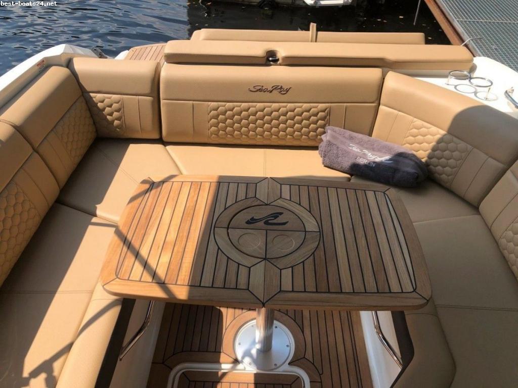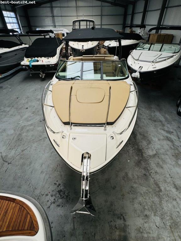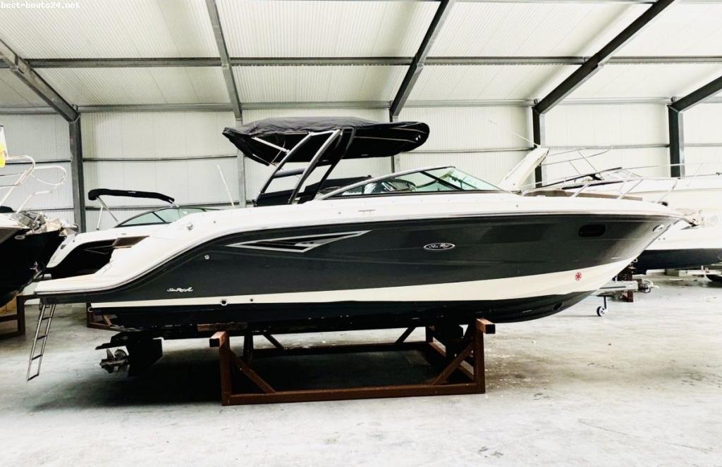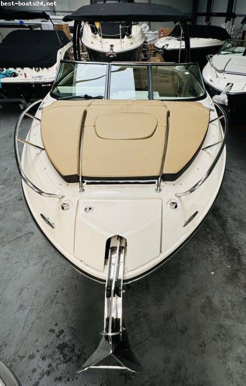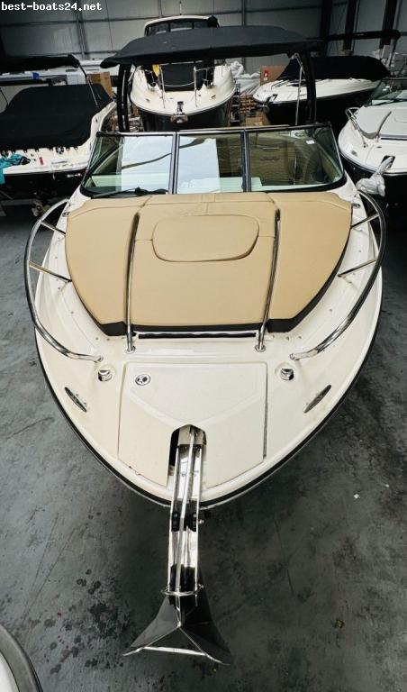 | Ausstattung: | Sea Ray 250 SunSport mit Vollausstattung * Kapitänspaket * Premium Soundanlage * Heizung Bootslagernummer: V Weyer Rumpffarbe: Sea Ray Black - schwarz Zusatzsätzlicher Gelcoatstreifen in Rally Red Oberdeck: White - weiß Polsterung: Ivory - weiß