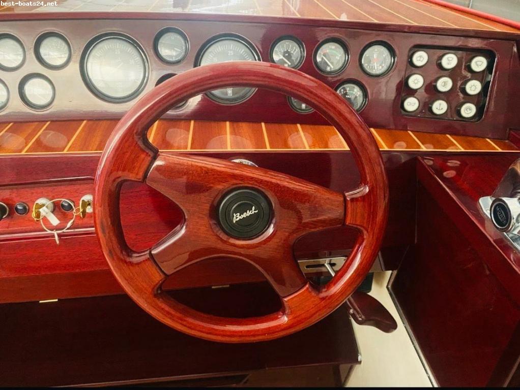 | Ausstattung: | ? Boesch 850 Runabout de Luxe (Sammlerstück) ? ? Einzigartige Gelegenheit: Boesch 850 Runabout de Luxe - *Neuwertiger Zustand* Erstwässerung war 2001 das Modeljahr ist 1999. Die Boesch 850 DE Luxe ist aus 1. Besitz ? Zum Verkauf steht ein unvergleichliches Boesch 850 Runabout de Luxe, das Inbegriff von Schweizer Handwerkskunst und zeitloser Eleganz. Dieses Motorboot-Juwel aus Erstbesitz präsentiert sich in einem makellosen Zustand, der selbst anspruchsvollste Sammler begeistert. ? Sammlerstück: Eine Rarität auf dem Markt, die durch ihre Historie und ihren Zustand besticht. Boesch-Boote sind bekannt als "Urtypen des exklusiven Sportmotorbootes". ? Extrem geringe Betriebsstunden: Mit nur 89 originalen Betriebsstunden ist das Boot kaum genutzt und der Motor nahezu neuwertig. ? Stärkste Motorisierung: Ausgestattet mit der leistungsstärksten verfügbaren Motorisierung (2 x 314 PS), die für beeindruckende Performance auf dem Wasser sorgt. ? Perfekt gepflegt: Das Boot wurde ausnahmslos in einem Hallen-Winterlager aufbewahrt und regelmäßig gewartet, um seinen neuwertigen Zustand zu erhalten. ? Die Boesch 860 DE LUXE hat einen Straßenzugelassenen Harbeck 25 km/H TYP: WZBA 60 angefertigten Spezialanhänger zum Lagern. Dieses Runabout verkörpert die Faszination klassischer Motorboote und ist bereit für einen neuen Eigner, der seine Exklusivität zu schätzen weiß. Ein echtes Liebhaberobjekt, das seinesgleichen sucht. Motoren & Getriebe: 2 X Boesch Crusader Marine V-8 Motoren, 454 CID mit jeweils 231 kW mit Velvet Untersetzungsgetriebe 1,58:1 Sonder