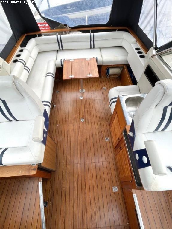 MOTOR: Diesel Hersteller: Yanmar - Turbo Diesel Typ: 4 LH-HTE Leistung: 140 PS Hubraum: 3,455 Liter NEU - Motorjahresservice NEU - Getriebeservice NEU - Impeller NEU - Unterwasserfolgeanstrich NEUER Yanmar Anlasser 2 teiliges Verdeck Austattung: - Elektrische Ankerwinde - Kompass - Landanschluss - Hella Navigationsbeleuchtung - Kühlschrank, Edelstahlspüle und Origo 3000 Spirituskocher 2 flammig auf der Plicht - Separater WC Raum mit Waschbecken - Badeplattform mit Edelstahlbadeleiter - Feste Trimmklappen - 6x Klampen - Unterflurkabine SEA RAY Ausstellung in Berlin Adlershof Der Verkauf erfolgt im Kundenauftrag. Alle Angaben beruhen auf Informationen des Eigners und werden nicht garantiert. Irrtum und Änderungen bleiben ausdrücklich vorbehalten. Gern nehmen Wir Ihr Boot Inzahlung. Inzahlungnahme, Anlieferung und Abholung möglich! Hollandboot.de Berlin & Sea Ray Berlin Verkaufsausstellung im Hauptgebäude bitte die Einfahrt Hausnummer 351 nehmen. Adlergestell 351 - 361 12489 Berlin Öffnungszeiten: Montag bis Freitag: 8.00 - 18.00 Samstag: 10.00 - 15.00 Tel. 030-64329866 Mobil. 0175-1662339 Geschäftsführer: Stefan Seckler Sea Ray Berlin im BOOTSWERK das NEUE Wassersportzentrum in der Hauptstadt. hollandboot DE GmbH Geschäftsführer: Stefan Seckler Handelsregister Berlin Nr. HRB 105757 B Umsatz ID.: DE 217649870, Berlin impressum: https://hollandboot.de/impressum.htm Ansässig im BOOTSWERK.berlin