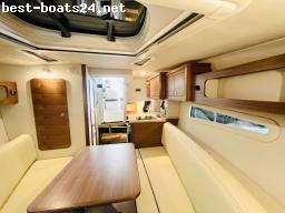 MOTOR: Mercury® MerCruiser® 6,2 Liter Der V8 neu erfunden Ein 6,2l V8 Motor mit beispiellosem Drehmoment und Beschleunigung um Sie schnell und sanft auf Touren zu bringen. PS/kW 350 / 257 Maximale Drehzahl (bei Volllast) 5000 - 5400 Motortyp V8, 2-Ventil/Zylinder Stößelstange Hubraum (l) 6.2 Liter Antrieb: Bravo III ( Duoprop) mit 2 Edelstahlschrauben Rumpffarbe: Sea Ray Black - schwarz Unterrumpf. weiß Oberdeck : WHITE - weiß Polsterfarbe: Stone - hellgrau mit dunkelgrauem Akzent ? - Dual digitales Armaturenbrett mit 2 x Simrad GO 9 Kartenplotter Digital Dash und Mercury Vesselview Link für Motordaten ? - Navigationskarte ? - Mercury Avtive Trim ? - Sportlenkrad Sondermodell " Sea Ray Berlin" ? - Docking Lights ? - Bimitop mit komplettem Camperverdeck in schwarz alle Seiten- und Heckteil mit Fenster ? - manuelle Unterwasser - Badeplattform ? - Webasto Diesel Heizung für Kabine und Cockpit ? - elektrische Trimmklappen ? - Bugstrahlruder von Vetus ? - elektrische Ankerwinde mit 10 kg Lewmar Edelstahlanker und Zusätzlicher Bedienung auf dem Vorschiff ? - GFK Geräteträger mit 2 x LED Downlights ? - Teakholz im kompletten Cockpit ? - Teakholz auf der Badeplattform ?- Cockpittisch Teak klappbar und umbaubar zur Sonnenliege ? - Fenderclips ? - großer separater WC Raum mit elektrischem WC Handwaschbecken und Dusche, Warm- & Kaltwasser ? - Fäkalientank mit Edelstahlabsaugstutzen und Fäkalientankpumpe ? - 2 x Dometic Kühlschrank in der Kabine und auf der Plicht ? - Kocher in der Pantry ? - Soundsystem Fusion Apollo mit Wifi und ? - Fernbedienung im Cockpit. Fusion Marinelautsprecher im Cockpit ? - Elektrischer Wischer ? - Signalhorn ? - Navigationsbeleuchtung und Ankerlicht ? - Batterielader ? - 220 Volt Landanschluß ? - Steckdosen in der Kabine und im Cockpit ? - Warm- & Kaltwasseranlage mit Boiler ? - Frischwassertank mit Edelstahleinfüllstutzen ? - Mülleimer ? - verstellbarem Lenkwinkel ? - USB Ladeanschluß im Cockpit ? - 9 x Edelstahl Getränkehalter ? - LED Plichtbeleuchtung ? - 2 x Batterie Hauptwahlschalter ? - elektrische und manuelle Bilgenpumpe ? - LED Kabinenbelechtung mit separaten Schaltern ? - große Dachluke mit Verdunkelung und Fliegengitter ? - Echtholz Teakstufe in die Kabine ? - 2 x Oberlichtfenster in der Kabine ? - Sonnnenliegepolster auf dem Vorschiff mit Abdeckung ? - Doppelfahrersitz mit Flip up Funktion für Fahrer und Beifahrer mit Sitzschienenverstellung ? - Edelstahl Wasserskihaken ? - Edelstahl Landanschlussdose ? - große 4 stufige XXL Badeleiter ( 40 cm Stufenbreite) ? - 6 x Edelstahl Belegklampen ? - Sitzgruppe in der Kabine wandelbar zum Bett ? - Flagenstockmit Magnetfußhalter ? - geteilte Bugreling Länge: 8,10 Meter Breite: 2,56 Meter Tiefgang: 1,02 Meter ( Antrieb unten) Tiefgang: 0,61 Meter ( Antrieb oben) Tankinhalt: 261 Liter Wassertank: 75 Liter Fäkalientank: 60 Liter Gewicht: ca 2.950 kg Gern nehmen Wir auch Ihr Boot Inzahlung! www.searay-berlin.de Offizieller Gebietshändler für die renommierte Marke Herr Stefan Seckler Mobil. 0175-166233